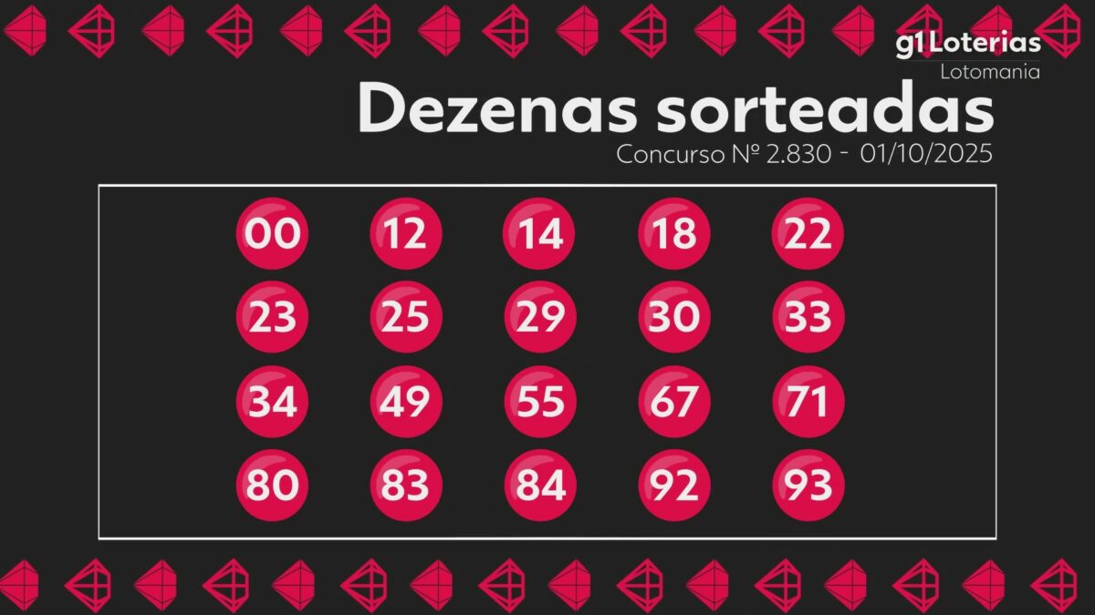 Veja abaixo os números do sorteio do concurso 2830 da Lotomania realizado nesta quarta-feira (1):