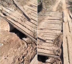 Ponte de madeira em más condições preocupa motoristas na RJ-202, em Cambuci