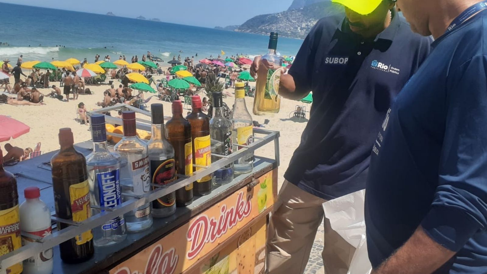 Durante esse fim de semana, o foco foi a repressão a ambulantes ilegais que vendiam bebidas destiladas na orla e no calçadão. Ao todo, mais de 400 garrafas foram apreendidas, muitas com o auxílio de drones.