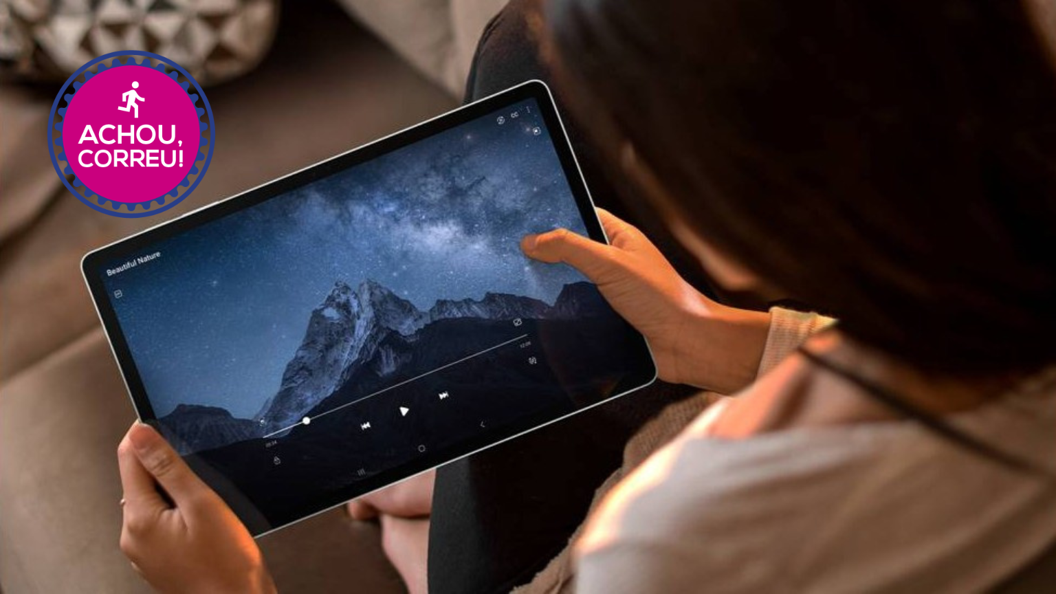 O Galaxy Tab S9 FE (128 GB) está disponível por R$ 1.959 no Pix para assinantes Amazon Prime. O cupom exclusivo pode ser resgatado na vitrine, logo abaixo do preço. A oferta concede 44% de desconto pelo dispositivo com preço de lançamento de R$ 3.499. O tablet intermediário atende a atividades diárias de trabalho, estudo e lazer.
