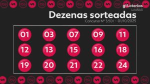 Resultado da Lotofácil g1 Veja abaixo os números do sorteio do concurso 3501 da Lotofácil realizado nesta quarta-feira (1): 1 – 3 – 7 –