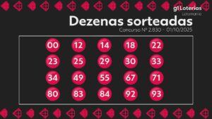 Resultado da Lotomania g1 Veja abaixo os números do sorteio do concurso 2830 da Lotomania realizado nesta quarta-feira (1): 0 – 12 – 14 –