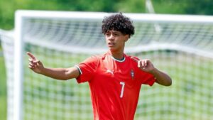 Instagram/cristiano Cristiano Ronaldo Júnior em jogo de Portugal O filho de Cristiano Ronaldo, Cristiano Ronaldo Júnior, estreou na manhã desta quinta-feira (30) pela seleção de