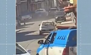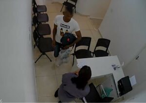 O crime foi registrado por câmeras de segurança do local. Nas imagens, é possível ver um homem vestindo blusa branca e calça jeans entrando na