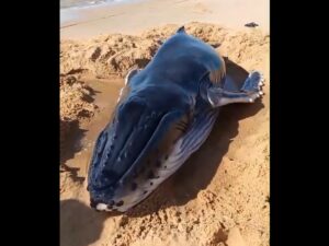 Um filhote de baleia foi encontrado encalhado na manhã deste sábado (6), na Praia de Grussaí, em São João da Barra, no Norte Fluminense. A