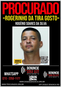 O Disque Denúncia divulgou neste domingo (7) um cartaz pedindo informações que levem à prisão de Rogério Soares da Silva, de 42 anos, conhecido como