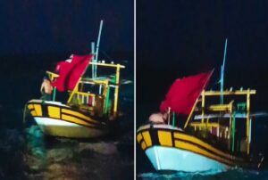 A embarcação chegou a ser rebocada, mas durante o trajeto, o comandante soltou os cabos de amarração e se afastou do navio de apoio, recusando
