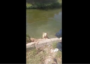 Agentes da Guarda Civil Municipal resgataram um cachorro que estava com dificuldade de sair do rio no Parque Tamariz, em Iguaba Grande, Região dos Lagos