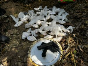 A Polícia Militar apreendeu, nesta segunda-feira (22), uma quantidade substancial de drogas, uma arma falsa e rádios transmissores no condomínio Minha Casa Minha Vida, em