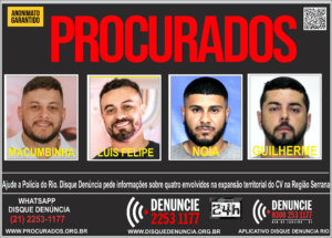 Os procurados são Wando da Silva Costa, o Macumbinha, de 35 anos, apontado pela polícia como chefe do Comando Vermelho (CV) na Região Serrana; Luís