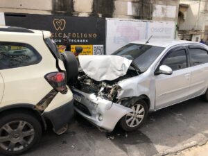 Carro desgorvenado quase atropela idoso e atinge outro veículo em Nova Friburgo